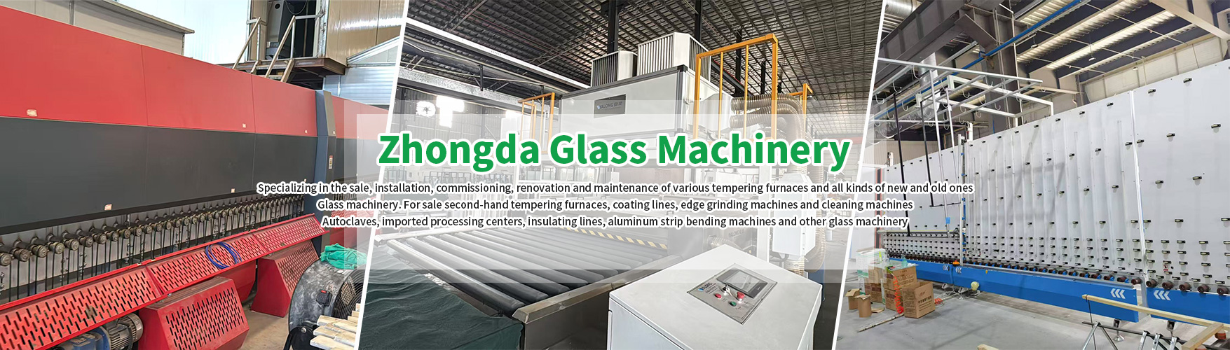 Foshan Zhongda Glass Machinery Technology Co., Ltd. specializes in selling, installing, commissioning, renovating and repairing various tempering furnaces and all kinds of new and old glass machinery. We sell second-hand tempering furnaces, coating lines, edge grinding machines, cleaning machines, autoclaves, imported processing centers, insulating glass lines, aluminum strip bending machines and other glass machinery. We prepare various glass deep processing production lines of different sizes for domestic and foreign customers. Our products are exported to India, Uganda, Rwanda, Angola, Vietnam, Morocco, Turkey, Kazakhstan, Iraq, Sudan, Lebanon... Our company currently has 18,000 square meters of factory space in multiple countries. We have a large number of glass machinery and equipment in stock for sale at reasonable prices. Customer first, we are dedicated to providing customers with high-quality technical guidance and a one-stop worry-free service. We hope that through our sincerity and efforts, we can become your long-term partner!